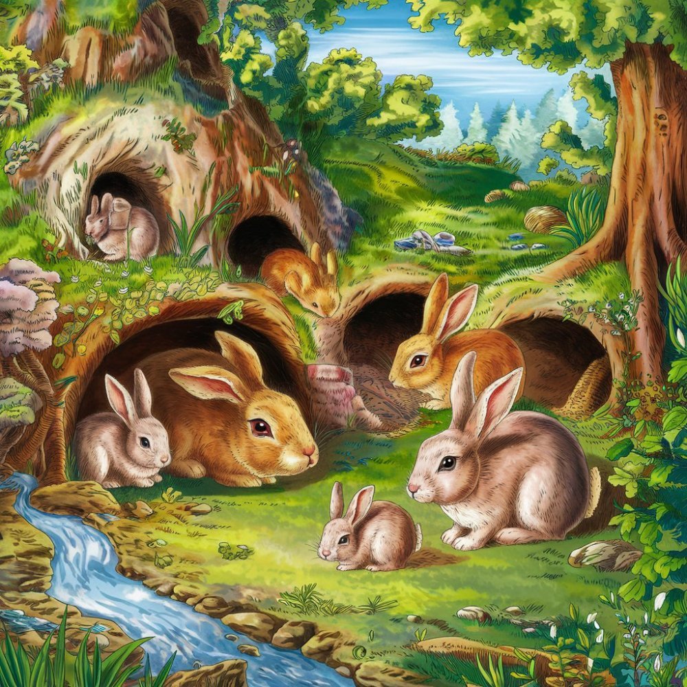 Konečne, po dlhom dni plnom dobrodružstiev, sa zajačia rodina vrátila do svojej nory. Zajačiky boli plné nových zážitkov a dojmov, ktoré si vymieňali ešte dlho do noci.
