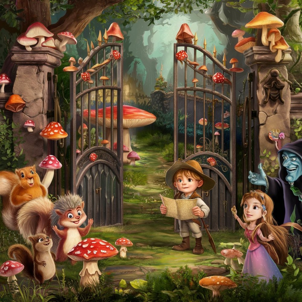 Kapitola 4: Po hodinách putování Jakub narazil na starobylou bránu zdobenou houbovými ornamenty. Po chvíli váhání se odvážil vstoupit. Uvnitř objevil rozsáhlé pole, kde rostly houby všech tvarů a barev, a každá z nich měla jiné kouzelné schopnosti.