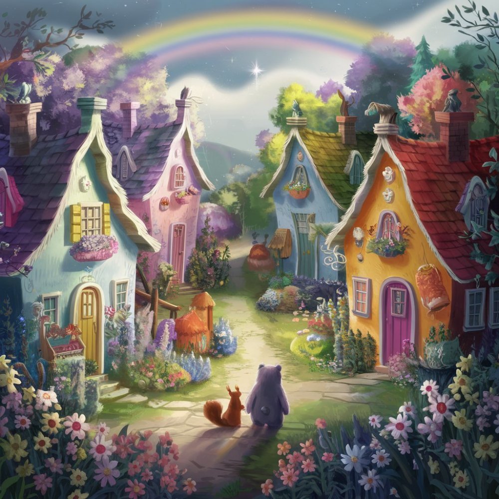 Bylo nebylo, v malé vesničce u lesa, kde každý dům měl barevnou střechu a zahrádky plné květů, žil malý medvídek jménem Míša. Míša miloval hry venku a nejvíce ze všeho miloval duhy, které se objevovaly po dešti. Jednoho dne však duha, která se objevila, náhle zmizela a nechala vesnici bez svých kouzelných barev.