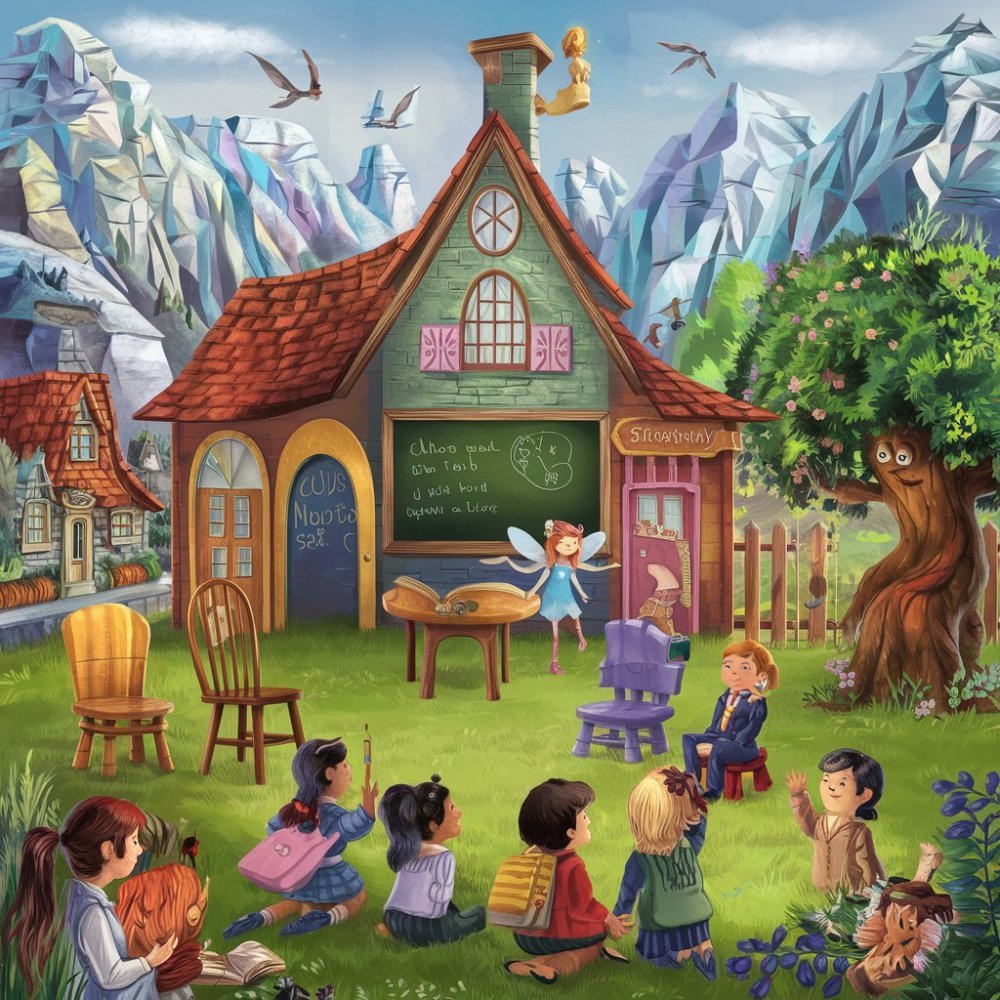 V jednej triede boli stoličky, ktoré vedeli tancovať, keď nikto nepozeral, a tabule, na ktorej sa samé písali kúzelné príbehy. Deti, ktoré tieto príbehy čítali, boli potom celý deň múdrejšie a šťastnejšie.